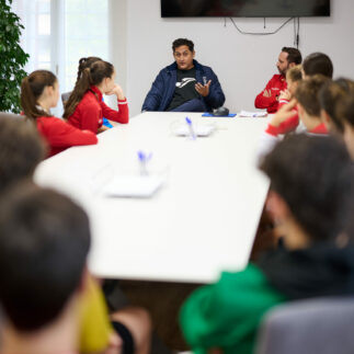 Almagro se mostró en todo momento muy participativo con los y las tenistas y aportó su visión tanto técnica como táctica. Desde estas líneas, queremos agradecerle su presencia en Pamplona e invitarle a que nos visite siempre que quiera.